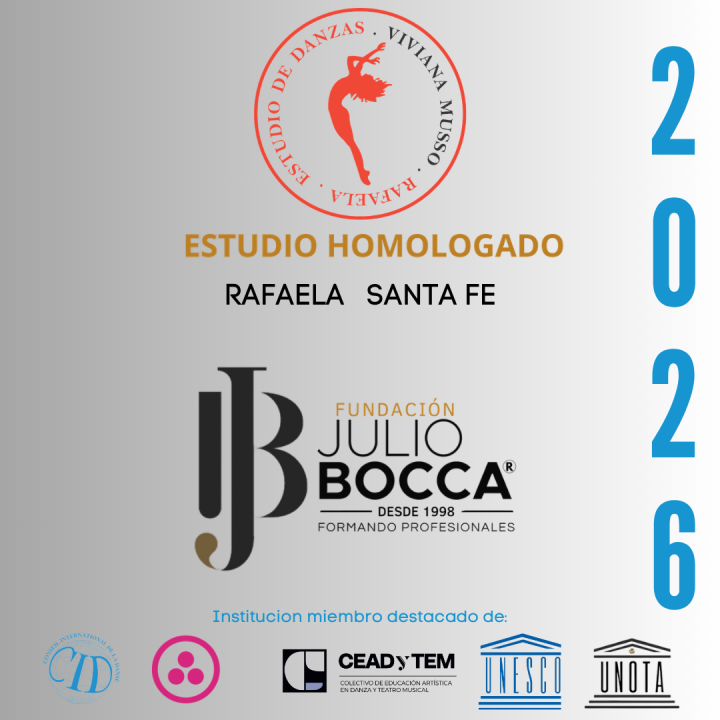 La Fundación Julio Bocca tiene el placer de reconocer por tercer año consecutivo al ESTUDIO DE DANZAS DE VIVIANA MUSSO - como ESTUDIO HOMOLOGADO por nuestro claustro académico 2026