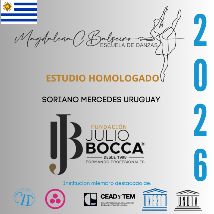 La Fundación Julio Bocca® tiene el placer de reconocer por segundo año consecutivo a La “Escuela de Danzas Magdalena C. Balseiro de la localidad de Mercedes, departamento de Soriano, de la República Oriental del Uruguay (Uy) , como ESTUDIO HOMOLOGADO por nuestro claustro académico en este 2026.