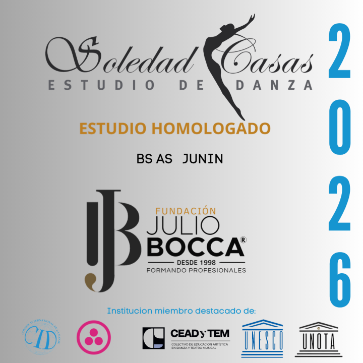 La Fundación Julio Bocca tiene el placer de reconocer a Estudio de Danzas Soledad Casas como ESTUDIO HOMOLOGADO por nuestro claustro académico 2026